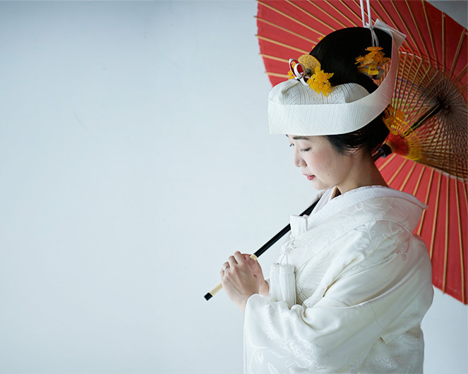 白無垢・色内掛・引き振袖まで、花嫁だけが着ることの出来る日本伝統の婚礼衣装を着て、品格と幸せを醸し出す花嫁という名の女神になれます。